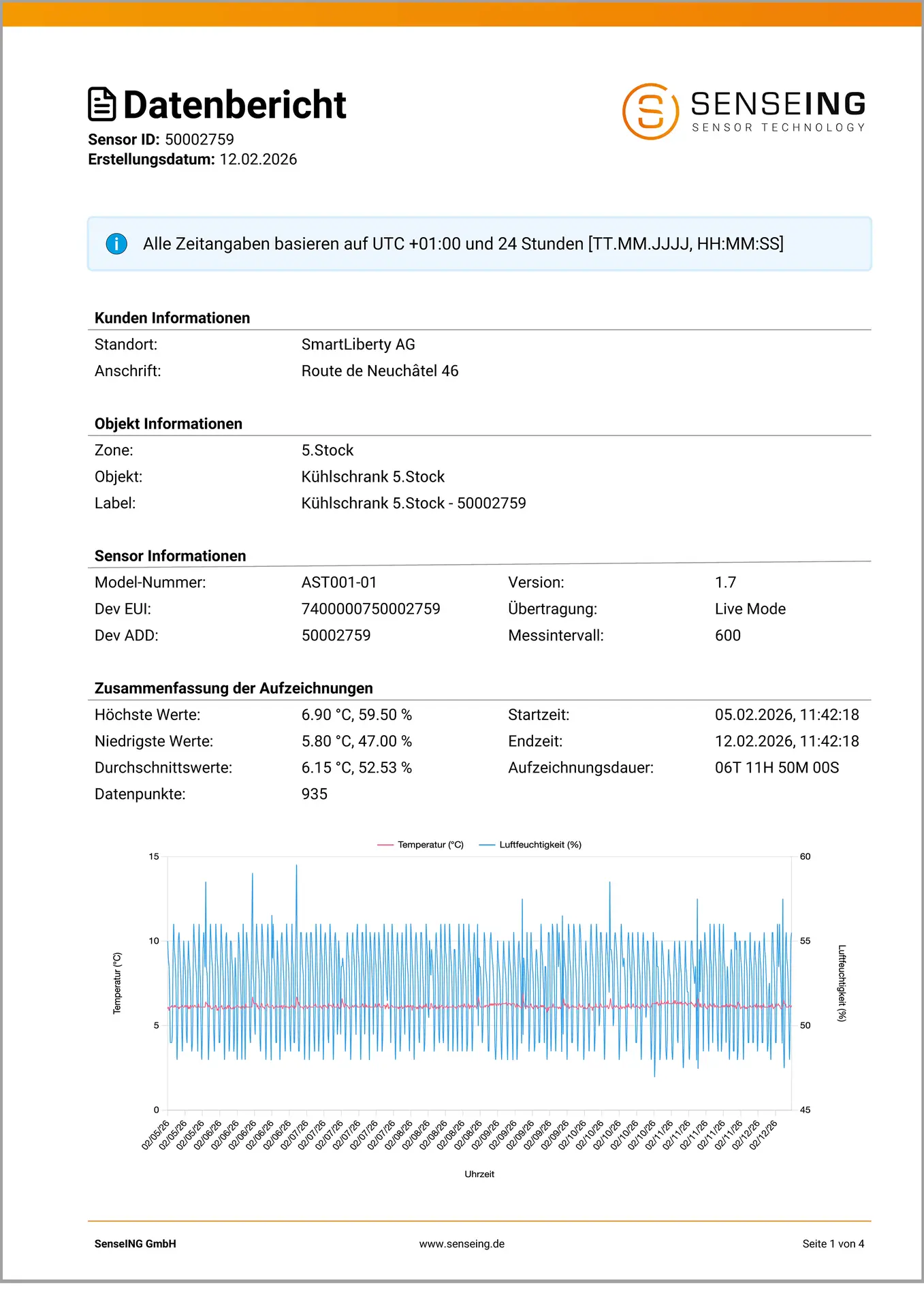 Der Temperaturverlauf kann jederzeit im Dashboard eingesehen werden, und bei Kontrollen oder im Falle eines Problems lässt sich ein Bericht zum Vorfall problemlos ausdrucken.